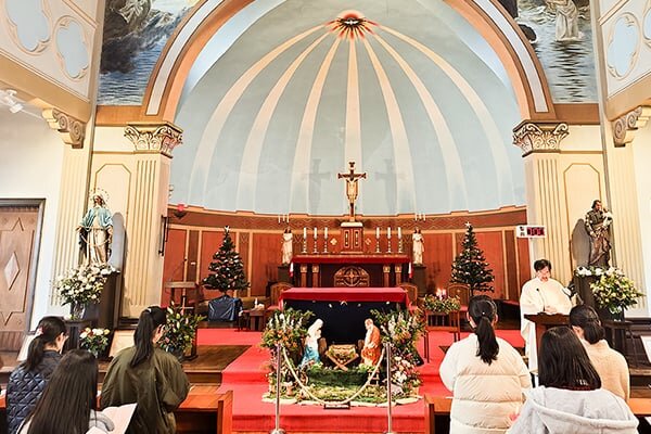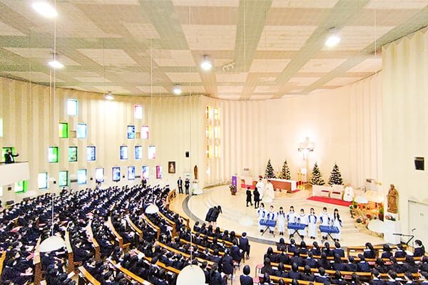 クリスマスを通していただいた喜びと平和を感謝し、世界が平和で満たされるように心をこめてみんなで祈ります。また神父を招いての「クリスマス講話」や音楽部によるトーンチャイム、キャンドルサービスなども行われ、南山教会の聖堂にクリスマスの雰囲気が満ちあふれます。