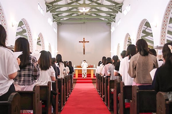 月に一度、指導司祭によるミサがあります。静かな時間が流れるチャペルで、落ち着いた心で自分を見つめることができます。