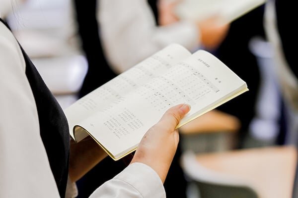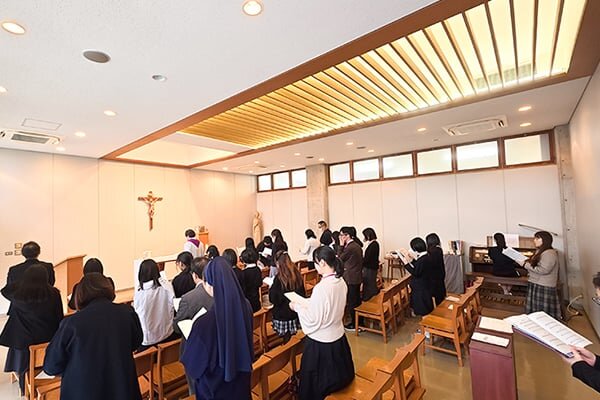 女子部の朝はさわやかな歌声から始まります。聖歌とお祈りによって心を落ち着けて、一日を過ごします。月曜日には神父による「朝のこころ」という講話もあります。