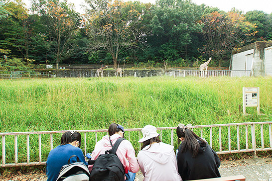 理科をはじめ各教科と連携して東山動物園で実習を行います。グループで調査活動を行い、動物の進化や、野生でのヒトとの共存について考え、スライドで発表します。ネットの情報に頼らず、自分の目で見て自分の頭で考える力を養います。
