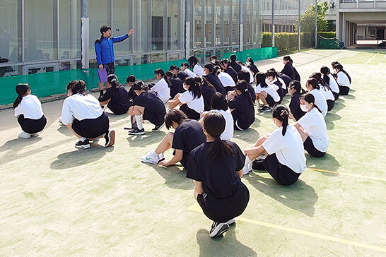 中学1年生~2年生の間で、スポーツなどの基本的な知識やルール、技術を習得し、運動習慣の構築と体力の向上を図り、中学3年生~高校2年生には、健康の保持増進のための実践力の育成を通じて、運動の楽しさや喜びを理解します。そして、高校2年生~3年生で、生涯にわたって運動に親しむ資質や能力を育てます。