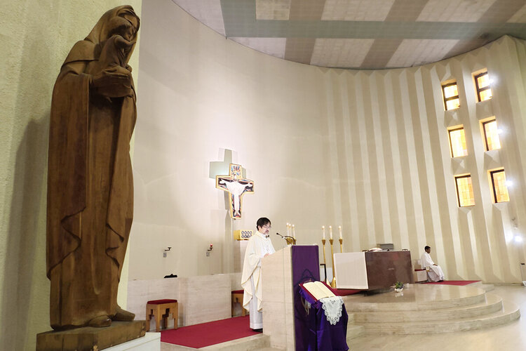 卒業式直前に行う卒業感謝ミサは、男子部と合同で「南山高等学校」として行うミサです。入学する前から卒業の日まで、いつも支えてくれた多くの方へ感謝の祈りをささげるとともに、南山生として培ったものを社会で活かしていくことを誓う場でもあります。