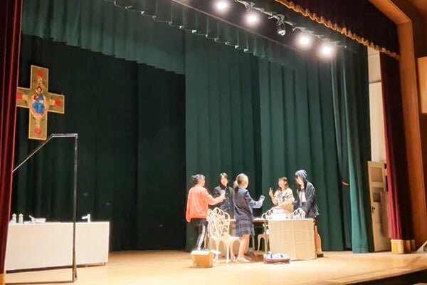 部員全員が「キャスト」も「スタッフ」も務められるよう、普段の練習や合宿を通じて演劇を基礎から学んでいきます。年に数回の学内での公演、地区大会や合同発表会など、一つ一つの舞台を大切に、全員で力を合わせて創り上げていきます。