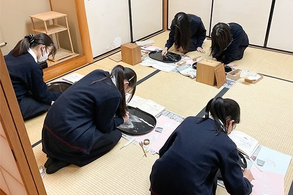 文化祭では「長月の茶会」を行い、たくさんのお客様をもてなします。着物での美しい所作や立ち振る舞いを身につけるため、夏期休暇中には浴衣を着て練習します。部活動の引退時には、「習事」のお免状を取得することができます。