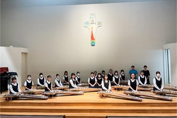 パイプオルガンは一本ごとに違う音色や音程を持つパイプを組み合わせることによって、一台で様々な演奏を可能にする楽器です。本校のチャペルの電子オルガンや、カトリック南山教会のパイプオルガンをお借りして練習しています。毎日の祈りや学校行事で聖歌伴奏を担当するだけでなく、文化祭では長編の曲目に挑戦すべく日々練習に励んでいます。