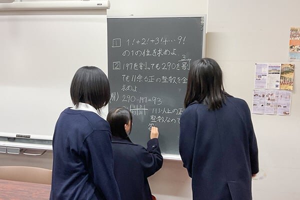 数研は中学生と高校生が一緒にアットホームな雰囲気で活動しています。数学を使ったゲームを行ったり、興味のある題材について話し合ったりして、楽しい数学のひとときを過ごしています。